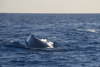 Vi sejlede fra Grand Turks, og allerede efter en time så vi dem: Pukkelhvaler. På 20 m vand på bankerne syd for Salt Cay så vi hvalerne puste et stykke væk og sejlede i den retning. I en halv times tid svømmede mindst tre pukkelhvaler rundt i nærheden af båden. Desværre sprang de ikke.