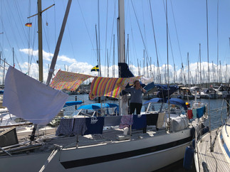 Det som blev nedprioriteret var det som de fleste nok tror man bruger til at forberede sig: At gøre båden klar. Vi endte med at være på Emma 3-4 dage de sidste 5 uger før afrejse, og flyttede først ned på Emma to aftener før afrejse, hvor vi i planerne havde tænkt os at bo der hele juni og klargøre Emma.